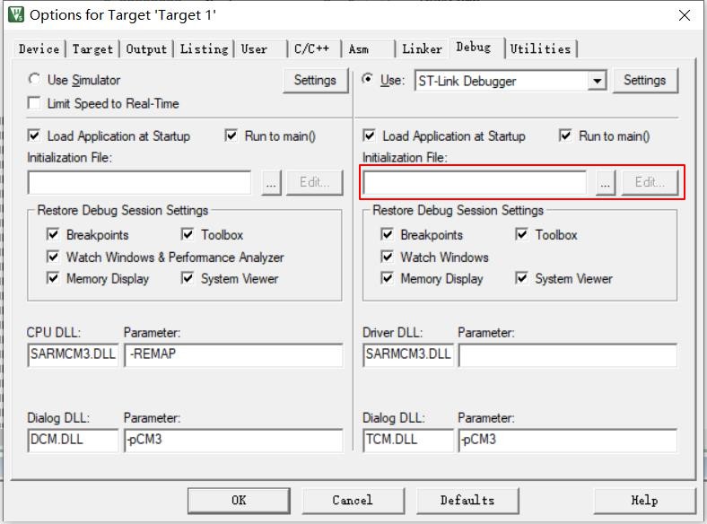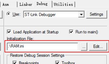 这里有一个仿真器初始化文件,可以在程序下载之前写一些寄存器做一些初始化之类的工作,是一个扩展名为.ini的文件,也有其自己的语法,按照下图编写这个ini文件: