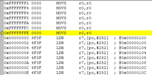 再跑一次看一下,这次停在了0xFFFFFFFE地址处